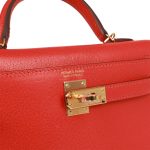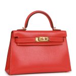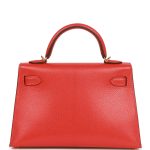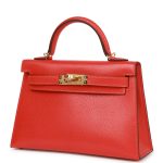 This Kelly is inCapucinechevre leather withgold hardware andhas tonal stitching, two straps with front toggle closure, single rolled handle and removable shoulder strap.