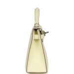 This Kelly, in the Sellier style, is in Jaune Milton epsom leather with gold hardware andhastonal stitching, two straps with front toggle closure, single rolled handle and removable shoulder strap.