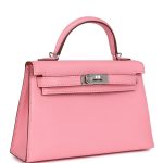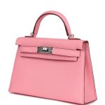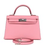 ThisVerso Kelly, in the Sellier style, is in Rose Confetti chevre mysore leather with palladium hardware and has tonal stitching, two straps with front toggle closure, single rolled handle and removable shoulder strap.