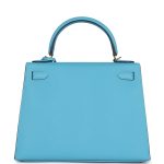 Hermes Kelly Sellier 28 Bleu Celeste Epsom Palladium Hardware
