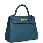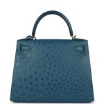 Hermes Kelly Sellier 28 Cobalt Ostrich Gold Hardware