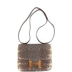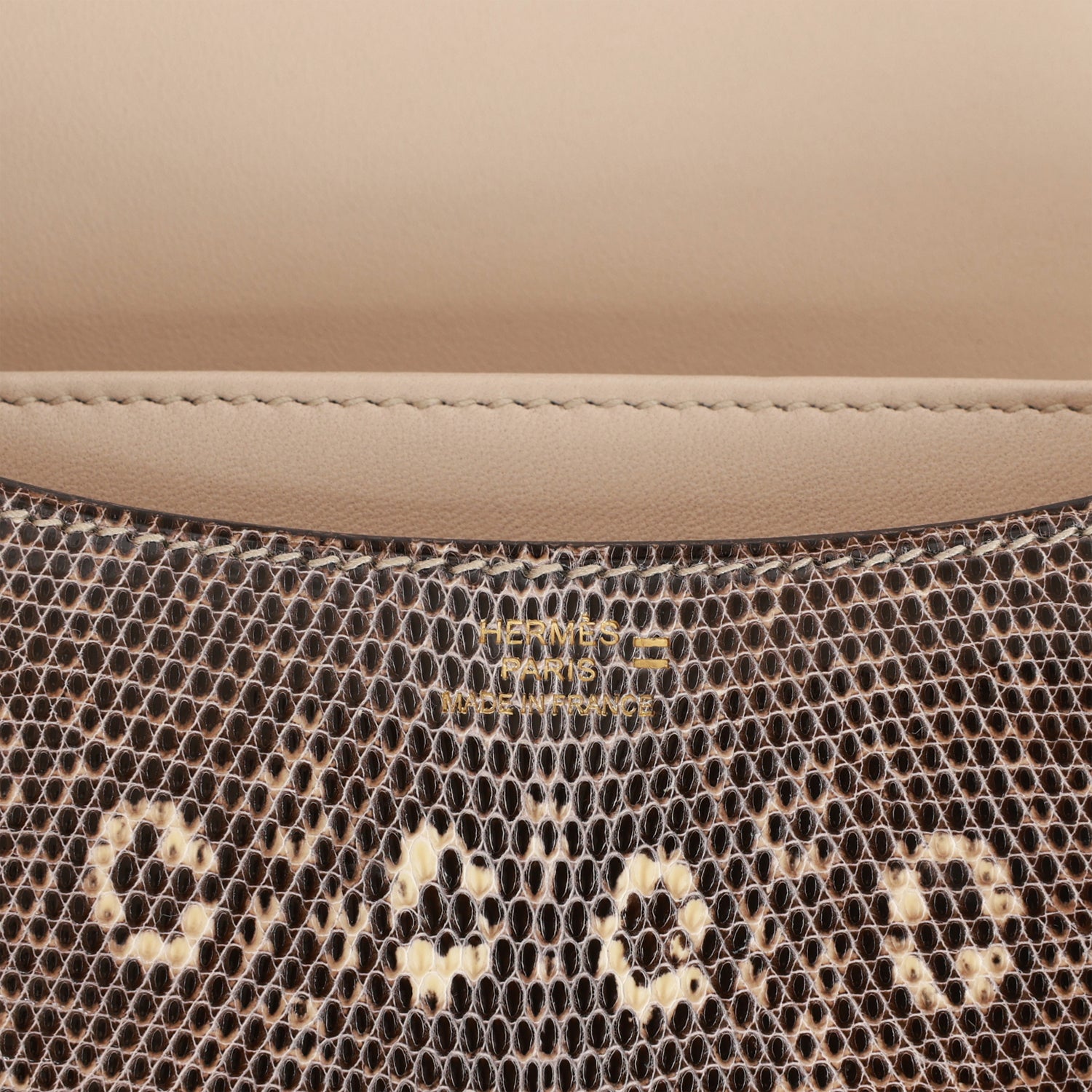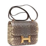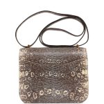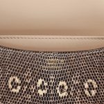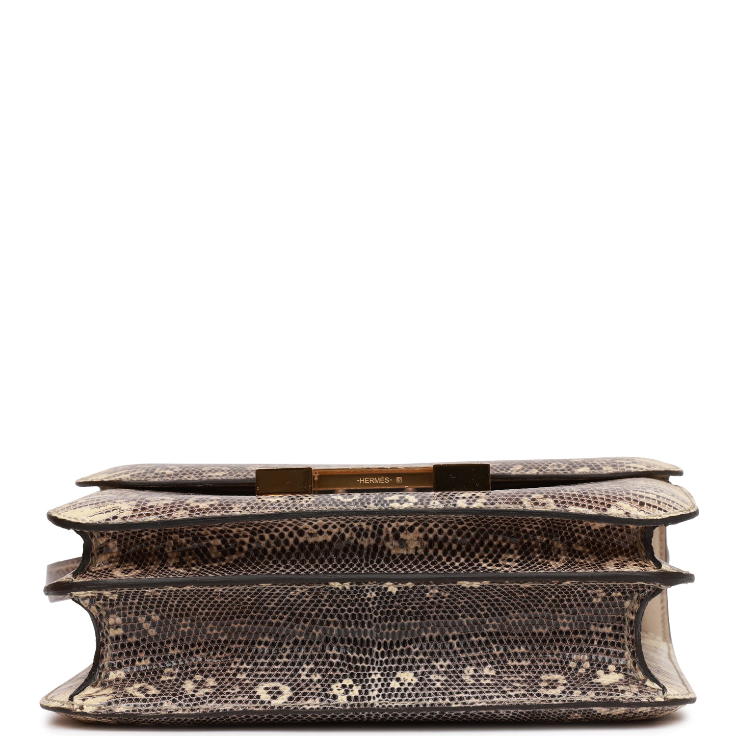 This Mini Constanceis inOmbre varanus salvator lizard with gold hardware and has tonal stitching, gold “H” snap lock closure and adjustable shoulder strap.