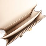 The interior is lined withParcheminchevre and has an open pocket on the front wall, a center divide, and an open pocket on the back wall.