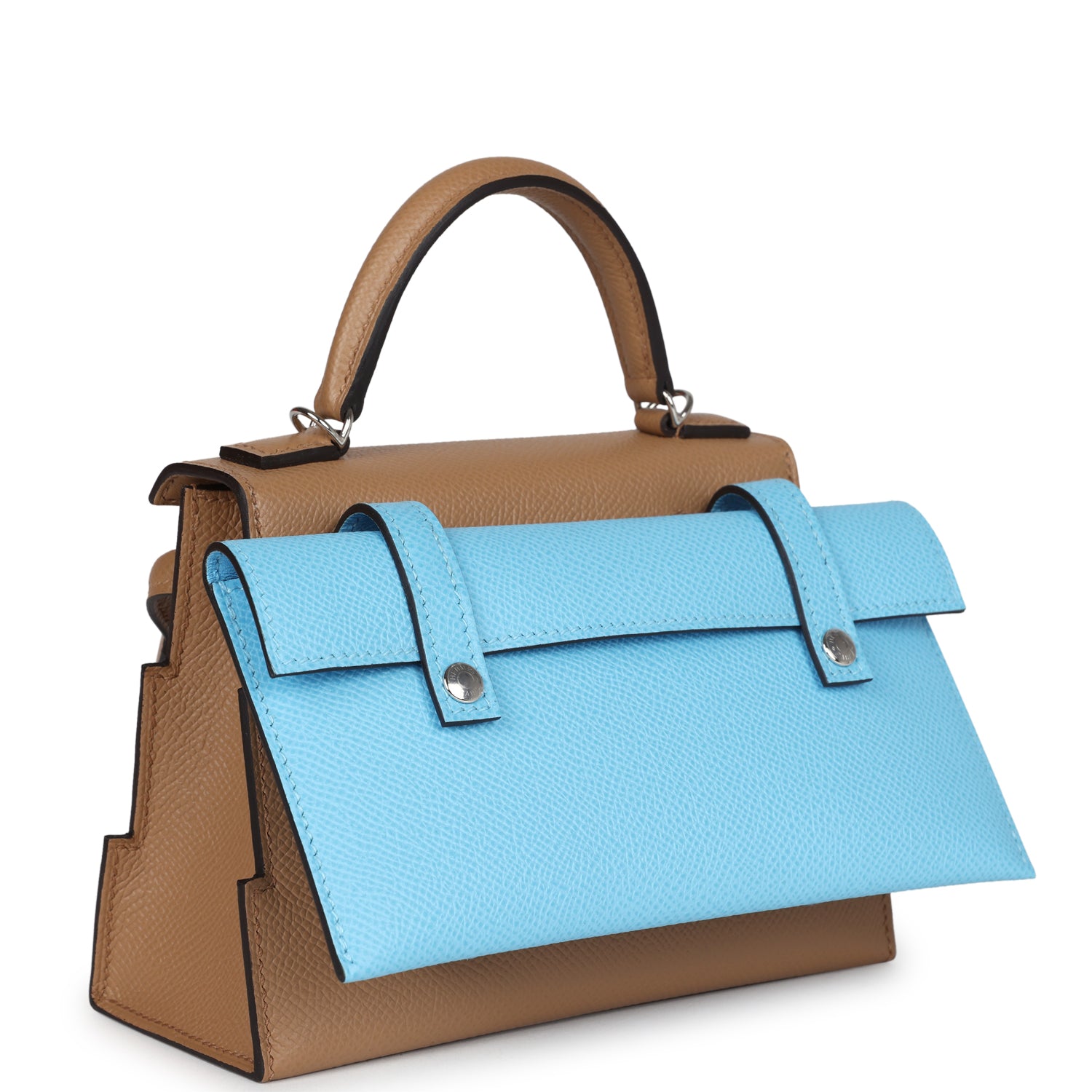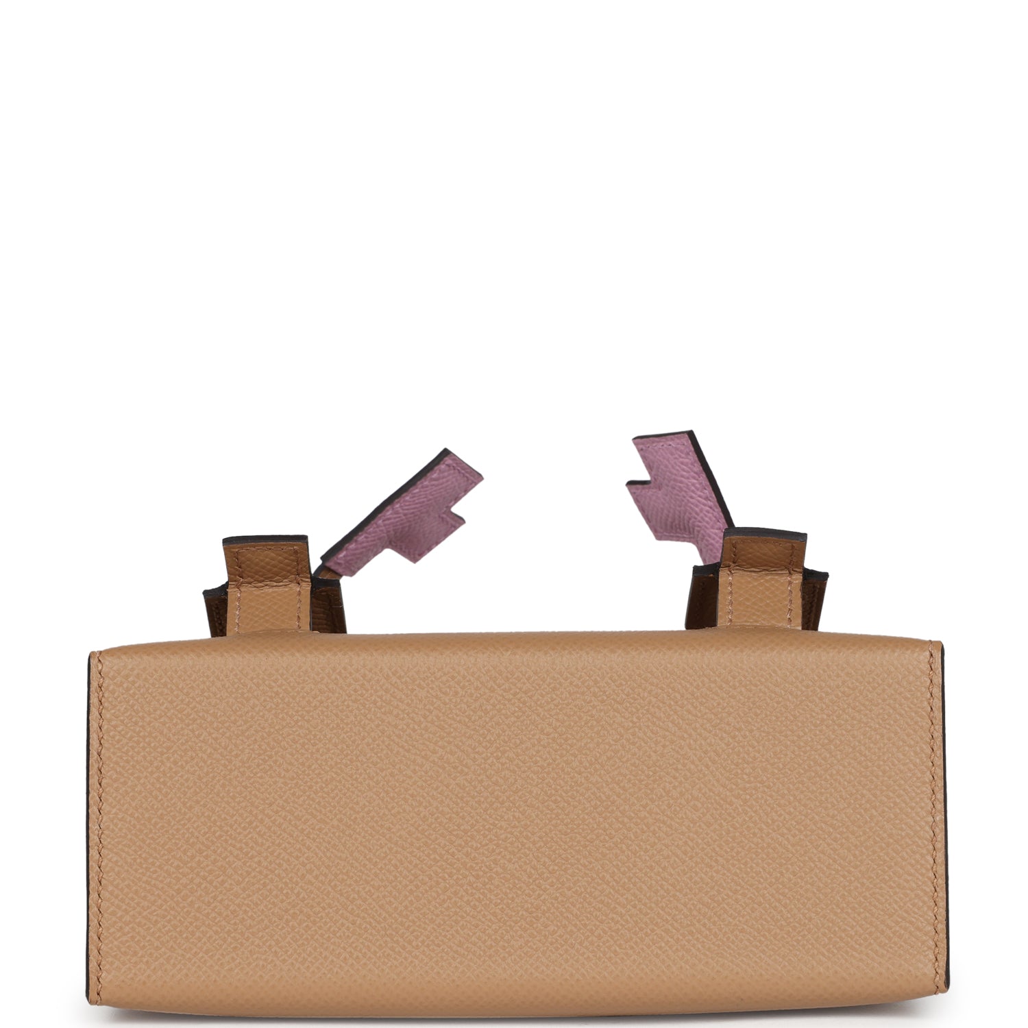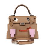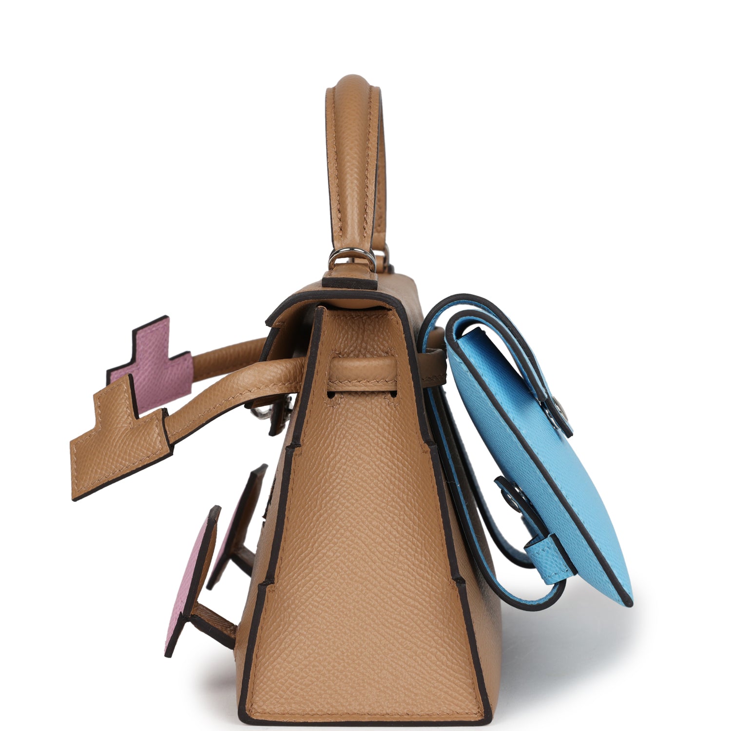 This “Quelle Idolle” Picto Kelly Doll is in Chai, Mauve Sylvestre and Terre Battue epsom leather with palladium hardware, and features tonal stitching, turnlock nose, two leather eyes, Bleu Celeste removable backpack, a removable shoulder strap, and moveable arms.