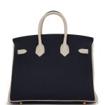 This Birkin is inBleu Nuit and Craie togo leather with gold hardware andtonal stitching,front flap, two straps withcentertoggle closure, clochette with lock and two keys, and double rolled handles.