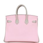This Special Order Hermès Birkin is in Rose SakuraandGris Perlechevre leather with rose goldhardware and hascontrast stitching,front flap, two straps withcentertoggle closure, clochette with lock and two keys, and double rolled handles.