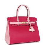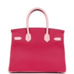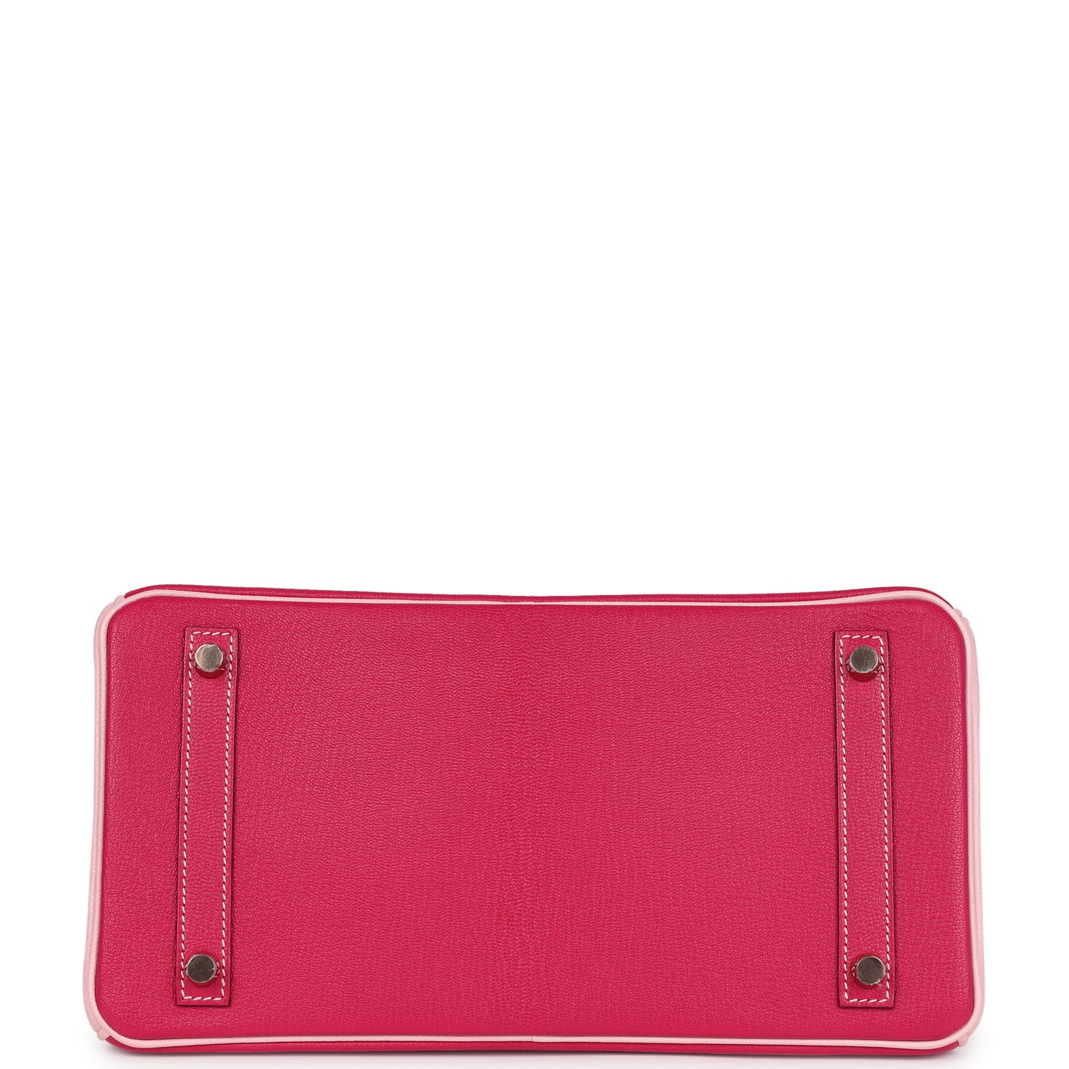 This Special Order Birkin is in Rose MexicoandRose Sakurachevre leather with rose gold hardware and has contrast stitching,front flap, two straps withcentertoggle closure, clochette with lock and two keys, and double rolled handles.