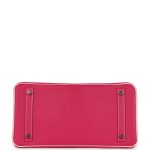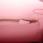 The interior is lined withRose Sakurachevre and has one zip pocket with an Hermès engraved zipper pull and an open pocket on the opposite side.