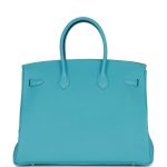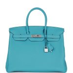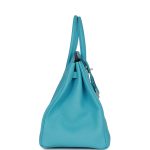 This Birkin is inBleu du Nord togo leather with brushed palladium hardware and has tonal stitching,front flap, two straps withcentertoggle closure, clochette with lock and two keys, and double rolled handles.