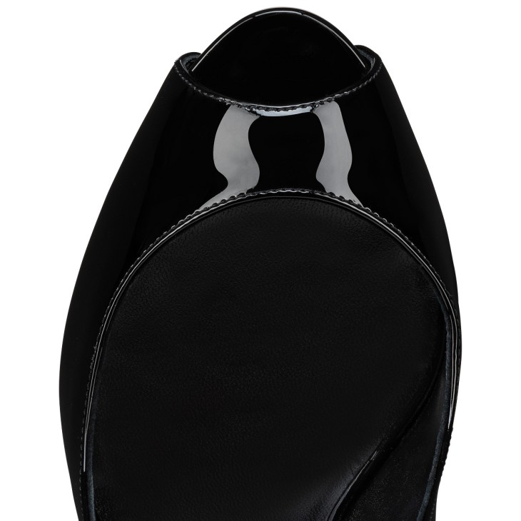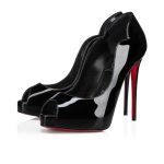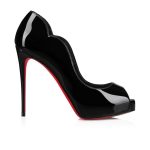 With its striking graphic lines, the Hot Chick Alta features a generous low-cut vamp and V-shaped notches around the ankle. This Maison Christian Louboutin model is set on a 120 mm heel, and is inspired by the iconic Hot Chick pump. It is entirely crafted in black patent leather for a sophisticated, timeless appeal.