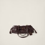 The Joie nappa leather bag, a style recovered from the Miu Miu archives, is reinterpreted in terms of its light, casual, and compact structure and attitude, creating a bag with timeless charm. The leather trick adds a refined detail while the lettering logo in relief completes the design with an iconic note.