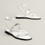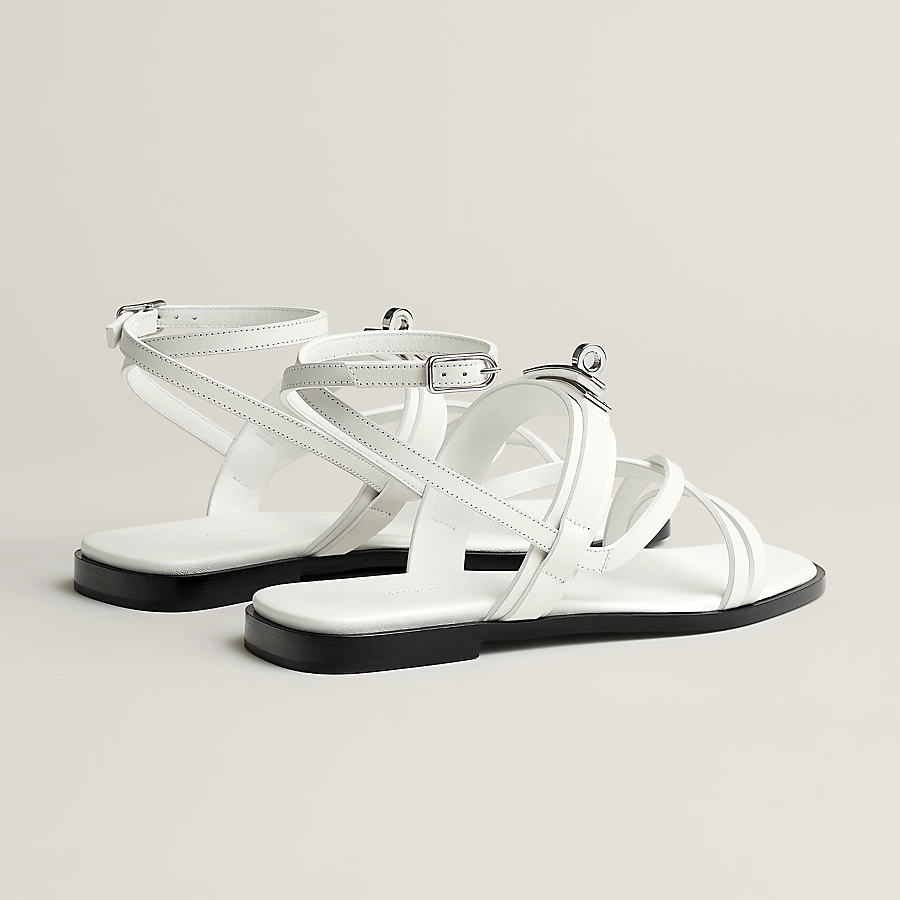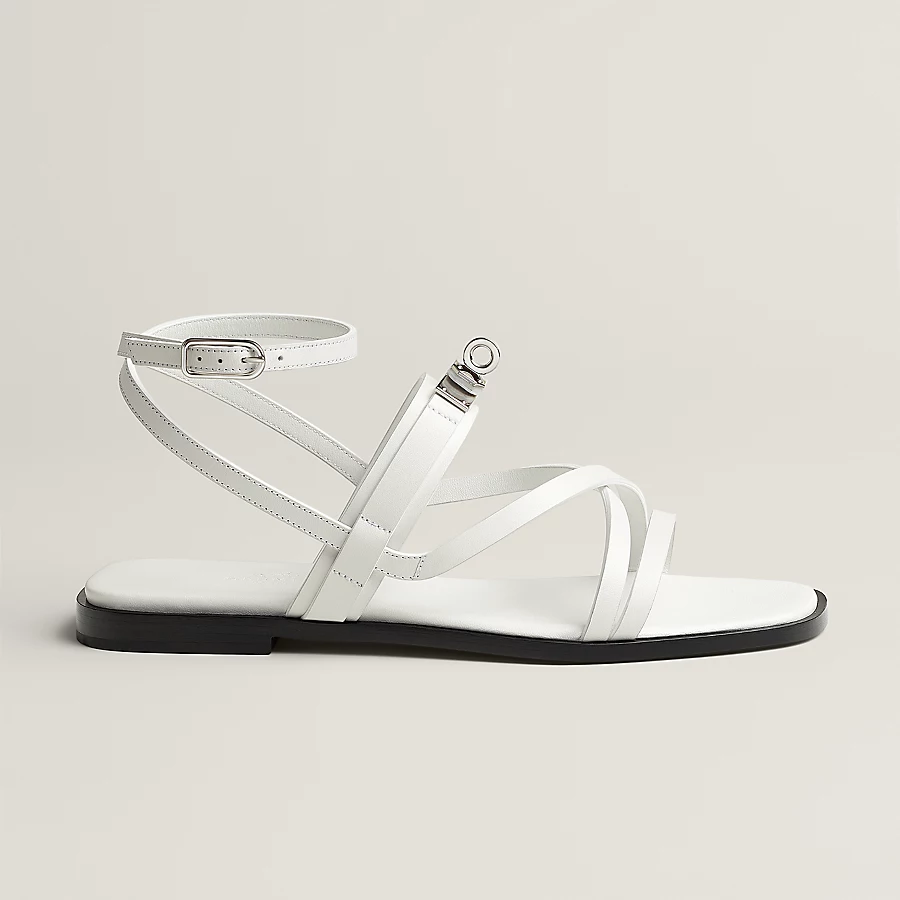 Sandal in calfskin with iconic palladium-plated Kelly buckle and straps.