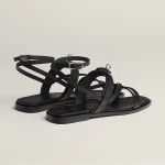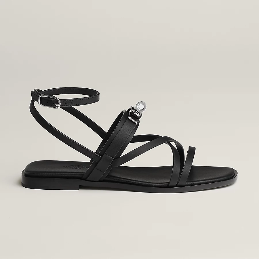Sandal in calfskin with iconic palladium-plated Kelly buckle and straps.