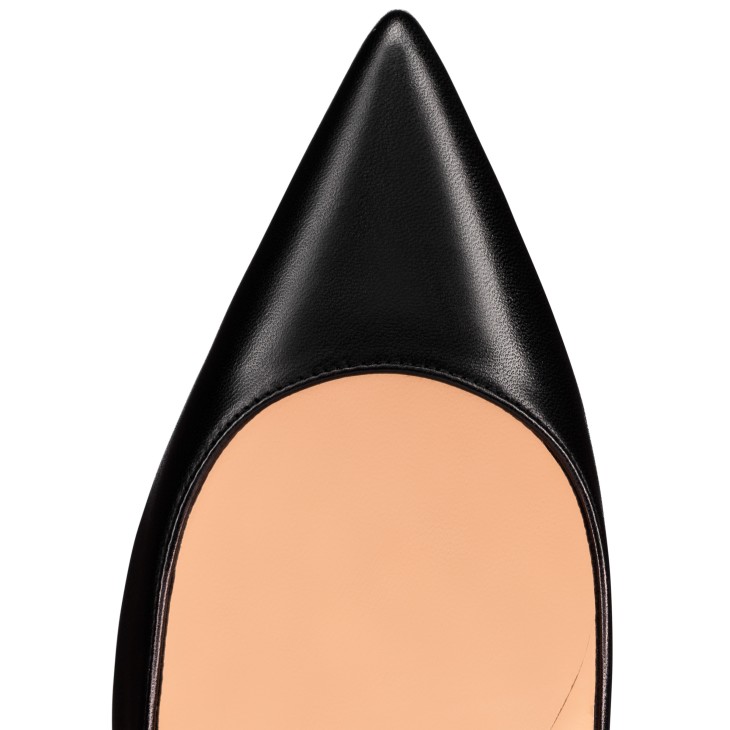A Maison Christian Louboutin icon, the Kate is the essential stiletto with a timeless slim heel. This pump features an alluring pronounced arch and a revealing low-cut vamp with a pointed toe. This season, the Kate showcases a buttery soft Nappa Shiny leather in sophisticated black and a soaring 100-mm heel. An exquisite modern style complete with a signature daring red sole.