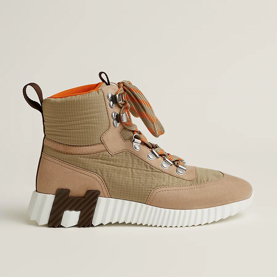 Sneaker in ripstop fabric and suede goatskin.