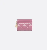 The Lady Dior Freesia card holder presents an elegant and practical style. Crafted in hydrangea pink patent calfskin with Cannage stitching, it is embellished with detachable D.I.O.R. charms. Featuring five card slots, the refined accessory will easily slip into any pocket or bag and can be paired with other Lady Dior creations.