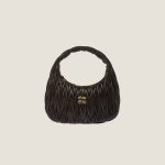 The Wander bag is reinterpreted season after season, becoming an iconic accessory of Miu Miu collections. Made with a unique technique that removes some of the color and is waxed at the end for a vintage effect, the bag is characterized by the sophisticated three-dimensional effect created by the fine workmanship. The hobo silhouette, a blend of retro inspirations and contemporary elegance, becomes a new expression of modern femininity.