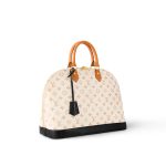 Nicolas Ghesquière unveils a new Monogram canvas on this Alma GM handbag. Inspired by sand, the delicate Monogram Dune colorway has a strong personality. Enhanced with black-color and semi-aged natural cowhide leather trim, this new colorway brings a modern feel to the art deco shape of this classic Louis Vuitton’s handbag.