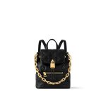 Introducing the Coussin Backpack Mini. This lightweight and versatile design is crafted from leather patterned with the House’s signature Monogram and is adorned with a removable Coussin chain. The functional gold-toned LV padlock secures all the essentials this mini format can carry for everyday use. Wear it as a backpack, over one shoulder, or carry it by hand.