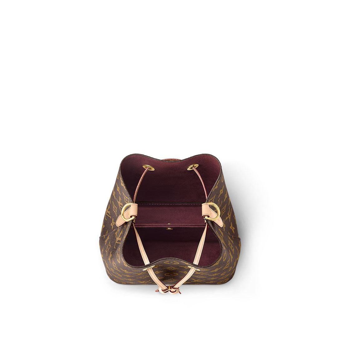 The NéoNoé BB in Monogram canvas with natural leather trim is a smaller interpretation of the House’s iconic NéoNoé bucket bag. Spacious enough to hold essentials such as keys, earphones, and an smartphone, it features a leather drawstring to close the bag and keep belongings secure. A removable handle and detachable, adjustable strap offer multiple carry options.