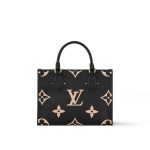 Inspired by Louis Vuitton’s famous Sac Plat from 1968, the OnTheGo PM tote is fashioned in Monogram Empreinte leather, embossed with a Medium Bicolor Monogram pattern. This smaller version of the original OnTheGo fits essentials such as an iPad Mini. Articulated top handles and an adjustable removable strap offer a variety of carry options.