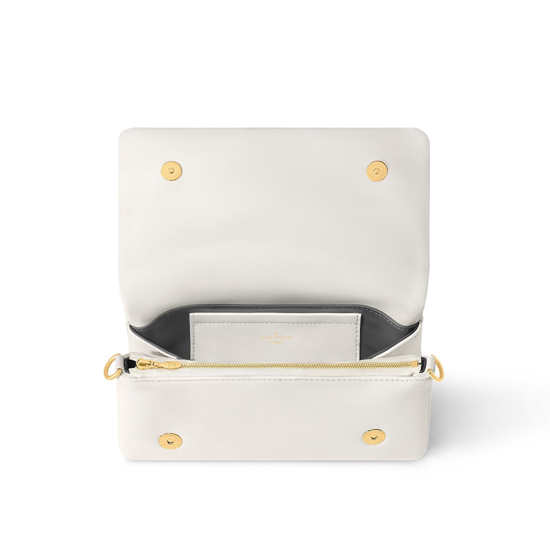 The Pochette Coussin is crafted from soft lambskin, which is embossed with the Monogram pattern to create a puffy effect. This on-trend bag has a petite, rectangular format and a flap closure, which opens to reveal a contrasting leather lining. It has an adjustable, removable shoulder strap, as well as the signature chunky chain of the Coussin line.