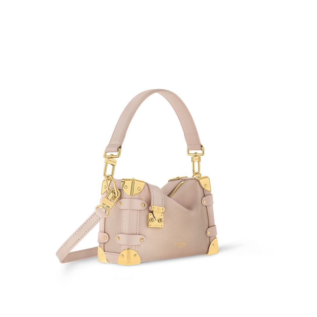 Part of the collaboration between Nicolas Ghesquière and Chinese artist Sun Yitian, this Side Trunk PM handbag is fashioned from soft and supple calfskin in a pastel colorway evocative of the artist’s universe. The gold-colored hardware, including the reinforced corners and S-lock attached to the zipper, brings a glamorous feel.