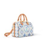 Inspired by the House’s famed Speedy travel bag from the 1930s, the Speedy Bandoulière 25 handbag’s classic lines take on a summery feel in Monogram Tiles canvas. The pastel print on the bag and its lining evokes the ceramic tiles of Lisbon. The LV Circle signature is centered on the bag.