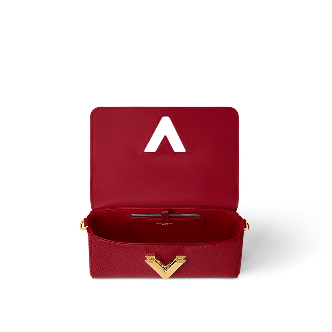 The Twist West Pochette in grained Epi leather is a chic way to carry essentials for day or evening. It reinterprets the iconic Twist bag in a fashionably elongated format, while offering the versatility of a removable, adjustable strap and a detachable chain. Its flap is secured with the collection’s signature LV Twist lock.