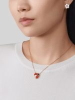Lucky Spring pendant, open wings ladybug, 18K rose gold, carnelian, onyx.