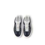 This edition of the LV Groovy sneaker comes in Mini Monogram denim for a casual-chic look. This Seventies-inspired design is complemented by refined details, including Louis Vuitton’s emblematic natural leather trim at the back. The on-trend platform outsole is decorated with a Monogram Flower and the House signature.