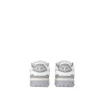 Now available for women, the LV Trainer Maxi sneaker is an oversized version of the LV Trainer sneaker originally designed by Virgil Abloh. Notable for its exaggerated, padded tongue and chunky outsole, this model comes in calf leather with rubber logos. It is finished with thick textile laces embellished with Louis Vuitton signature beads.