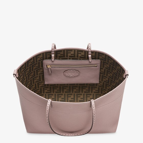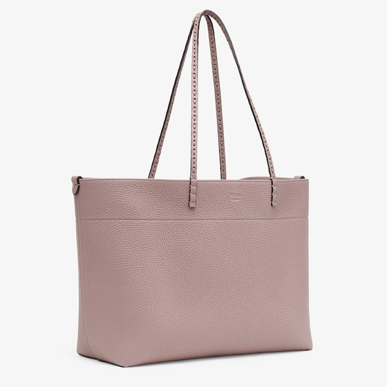 Made of mauve pink Cuoio Romano leather, calfskin with a characteristic natural grain, produced with a metal-free tanning process.