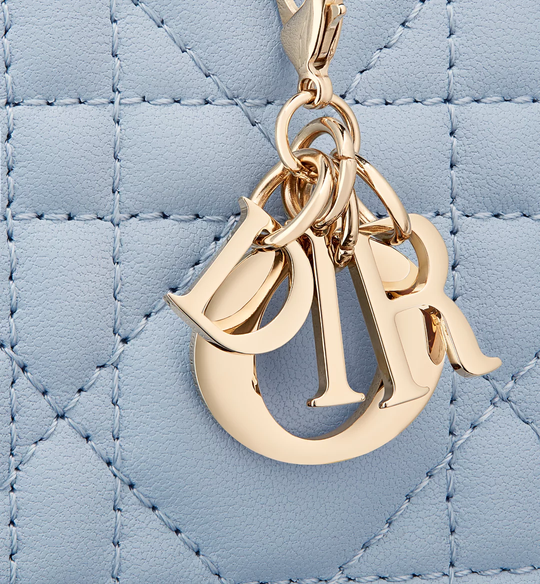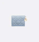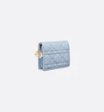The Lady Dior Gardenia wallet is both compact and spacious. The pale blue lambskin with Cannage topstitching and detachable D.I.O.R. charms create a chic and timeless look. The compact miniature accessory can hold all the daily essentials and may easily be coordinated with other items from the Lady Dior line.