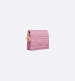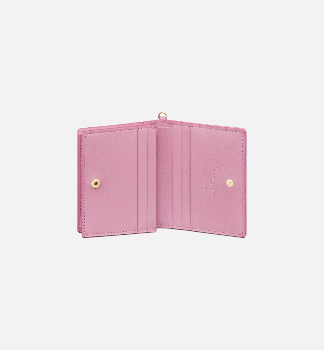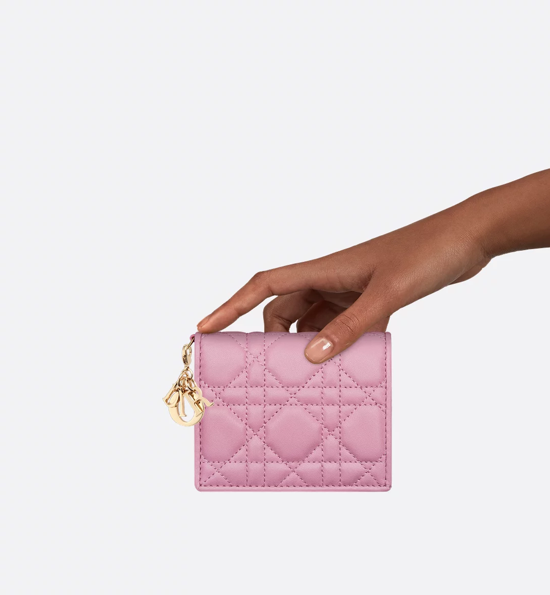 The Lady Dior Gardenia wallet is both compact and spacious. The hydrangea pink lambskin with Cannage topstitching and detachable D.I.O.R. charms create a chic and timeless look. The miniature accessory can hold all the daily essentials and may easily be coordinated with other items from the Lady Dior line.