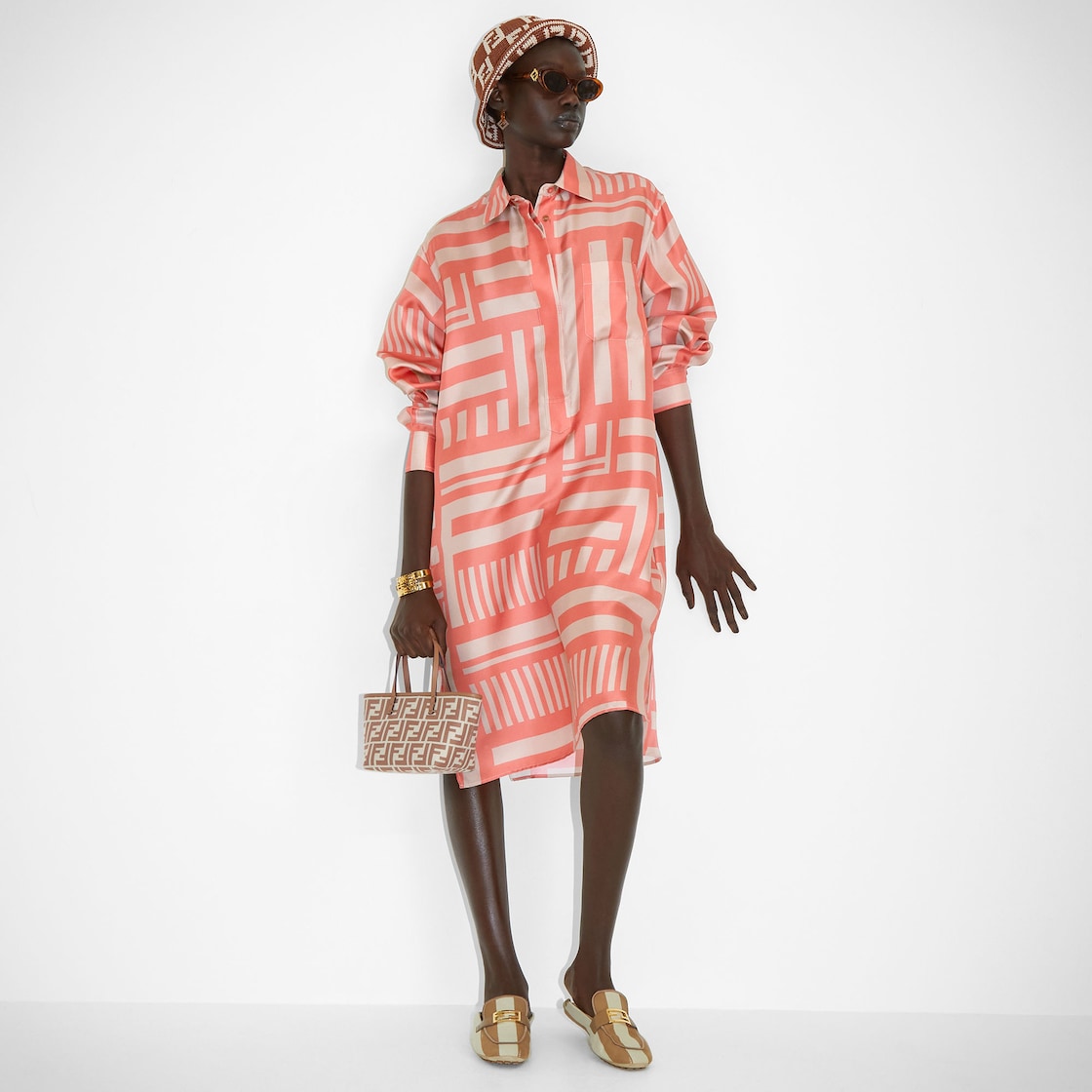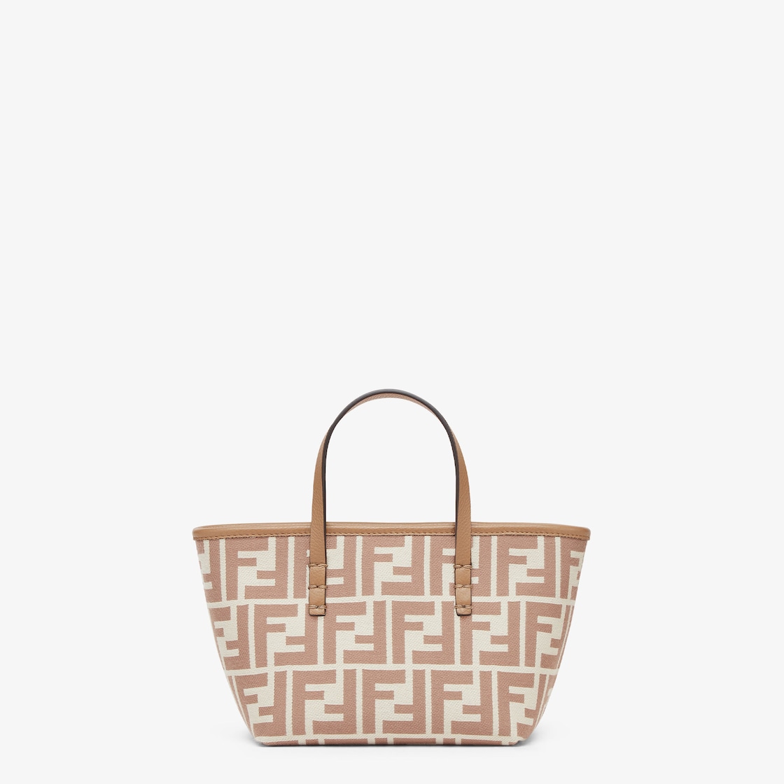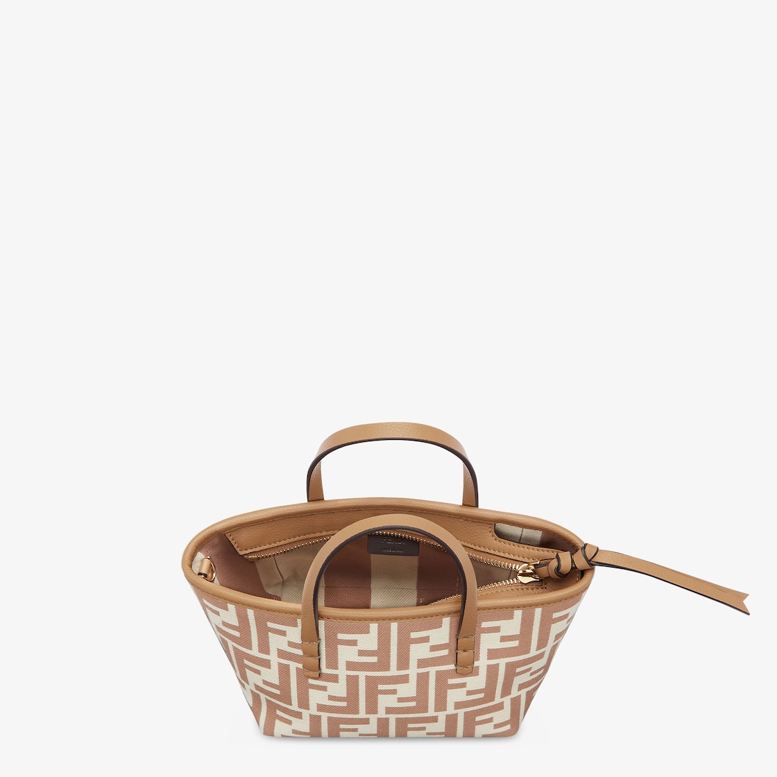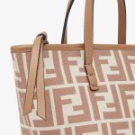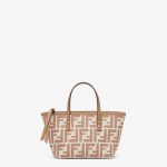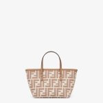 Mini shopping bag made of jacquard fabric with an iconic beige FF motif. Embellished with tone-on-tone leather and a zip fastening with a long, knotted leather zip pull.