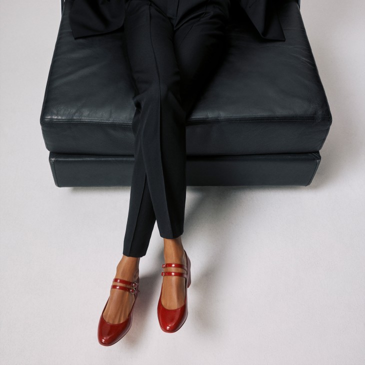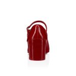 The Miss Jane pump is distinguished by its bevelled, wide 55 mm heel. Entirely crafted from Vog Loubi red patent leather, it features a rounded toe and Maison Christian Louboutin’s signature audacious vamp. Two slender straps with a metallic clasp delicately adorn the foot. The ‘Vog patent leather’ material, being more flexible, offers better suppleness. Its wrinkled effect may have slight variations between the photo and the product.