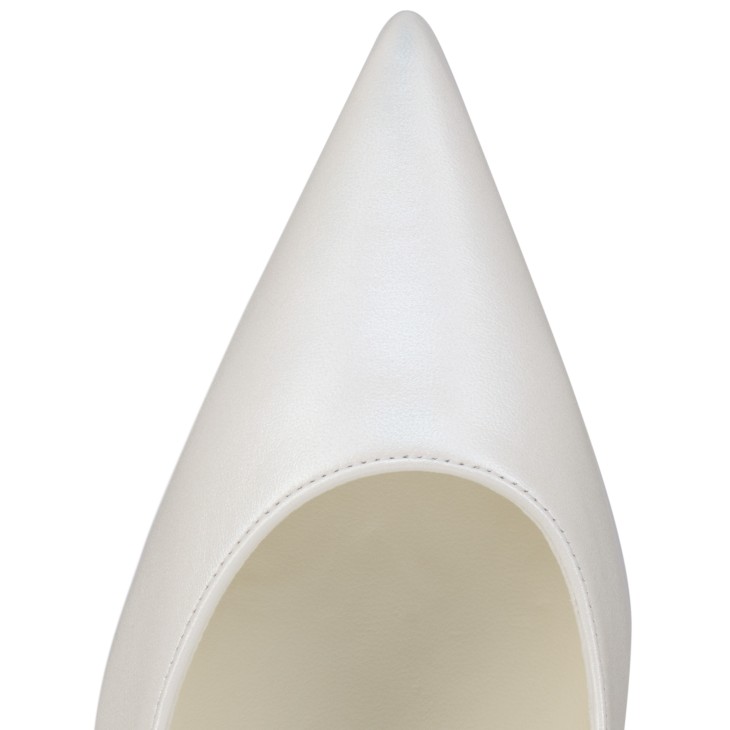 The tapered silhouette of the Miss Z pump offers sophistication. Set on an 80 mm stiletto heel that reveals the iconic red Loubi sole, this model from the Maison Christian Louboutin bridal collection is crafted from white pearlescent?nappa leather. Revealing the foot with its elegant vamp, this model features a new ‘Everlasting Red Sole’ thanks to an innovative coating technique that ensures resistance and lasting vibrancy for our signature Louboutin red.