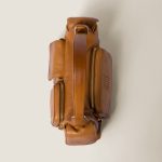 A refined, captivating aesthetic characterizes this new leather bag. The multiple pockets, inspired by utility wear, enhance the design, adding functionality and originality to the aesthetic. The metal hardware adds shiny touches to the accessory, while the lettering logo completes the aesthetic with an iconic, distinctive note.