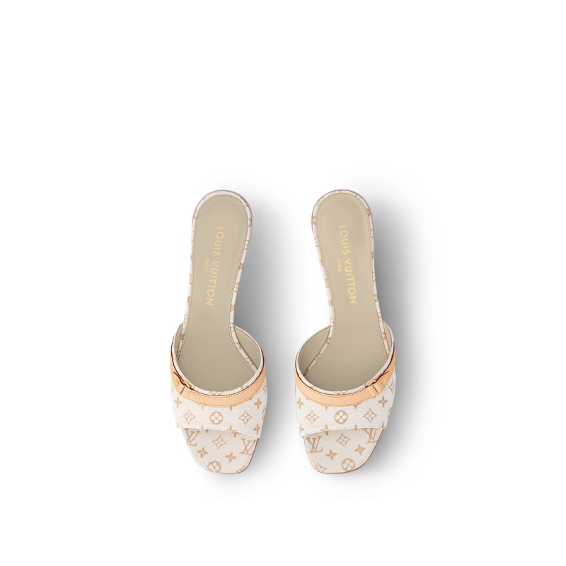This seasonal edition of the Neo Revival mule comes in Mini Monogram textile, inspired by the Louis Vuitton archives. The upper is embellished with a gold-toned stud and a decorative strap in natural leather, which evoke the heritage of the House. A feminine kitten heel and fine leather outsole complete this model.