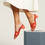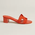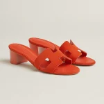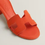 High heel sandal in suede goatskin with iconic ‘H’ cut-out detail and straight-cut edges.