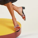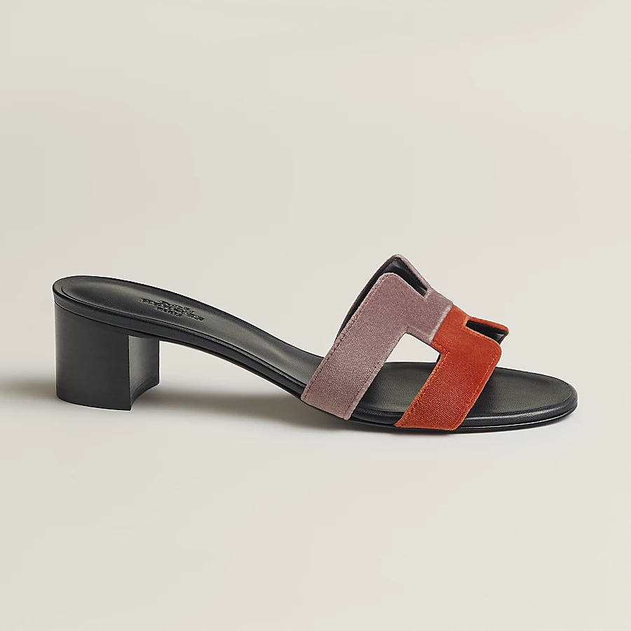 High heel sandal in velvet with iconic ‘H’ cut-out.