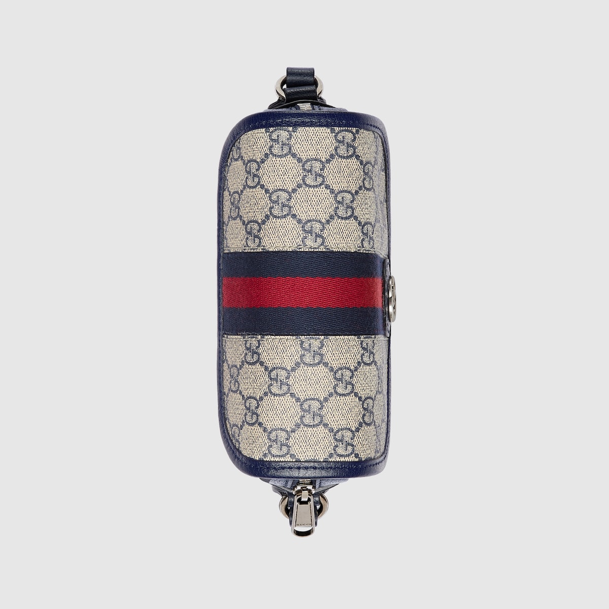 Guccio Gucci’s everlasting monogram continues to enrich new designs with a logo feel. This Ophidia mini shoulder bag is presented in a beige and blue variation of the historical GG Supreme canvas, complete with the Web stripe.