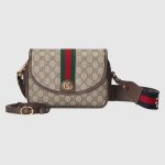 The Ophidia is reinvented in new and unexpected ways. Metal eyelets and studs define the historical silhouette to create a one-of-a-kind take on the archival style. Creating a playful contrast, the small-sized shoulder bag is crafted from the House’s signature GG Supreme canvas in the traditional color combination of beige and dark brown.