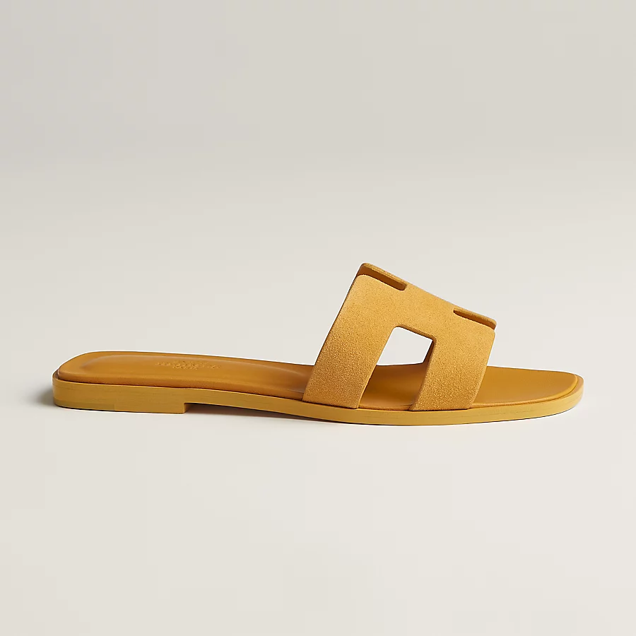 Sandal in suede goatskin with iconic ‘H’ cut-out and straight-cut edges.