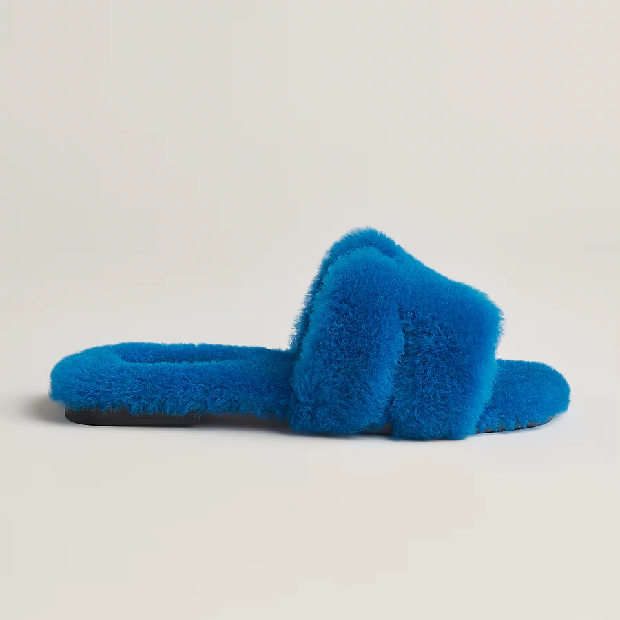 Sandal in shearling with iconic ‘H’ cut-out detail.