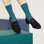 Loafer in suede goatskin with lacquered signature ‘H’ detail.