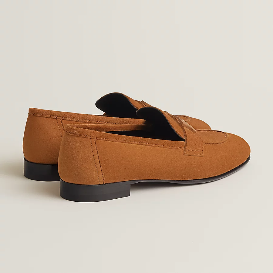 Loafer in suede goatskin with lacquered signature ‘H’ detail.