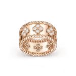 Perlee clovers ring, 18K rose gold, round diamonds, medium model; diamond quality DEF, IF to VVS.
