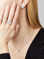 Perlée diamonds earrings, rhodium plated 18K white gold, round diamonds; diamond quality DEF, IF to VVS.